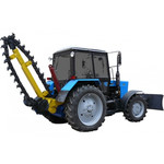 Беларусь МТЗ-82.1 Цепной экскаватор «Бара» с челюстной ковшом предназначен для прокладки газо — и водопроводов, сетей канализации, связи и электропередачи и позволяет производить быструю смену режущего органа для получения траншей разной ширины, используется на разных категориях грунта.